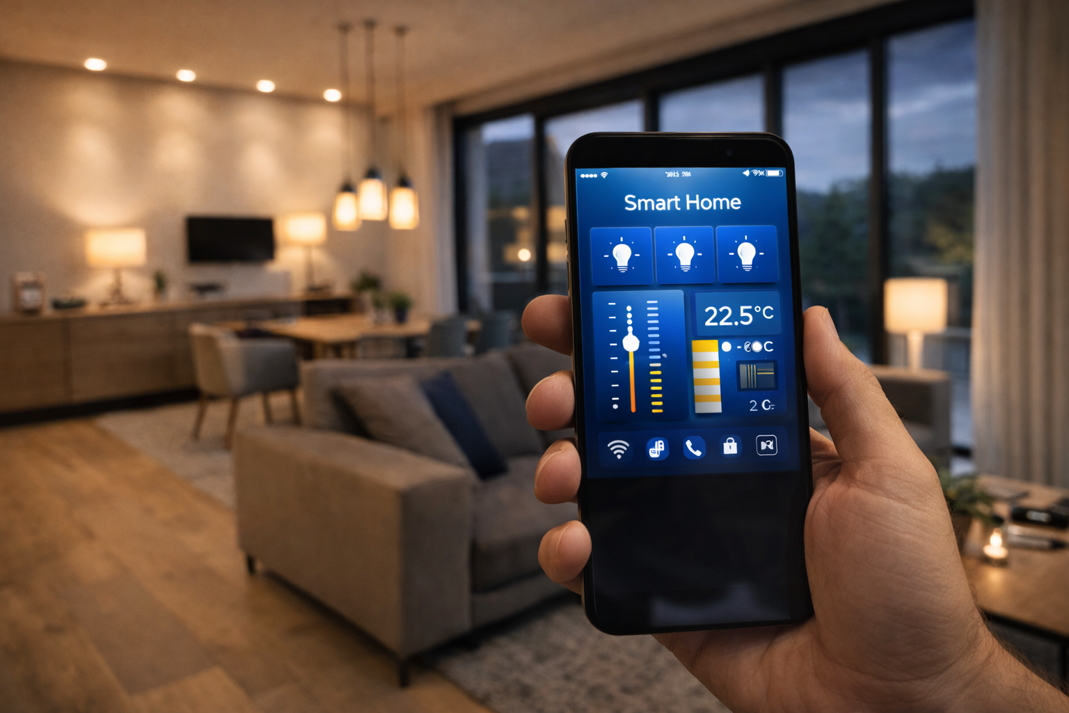 Inteligentní řízení domácnosti (světla, žaluzie, topení, klima, přístupy). Připravíme scénáře i automatizace.